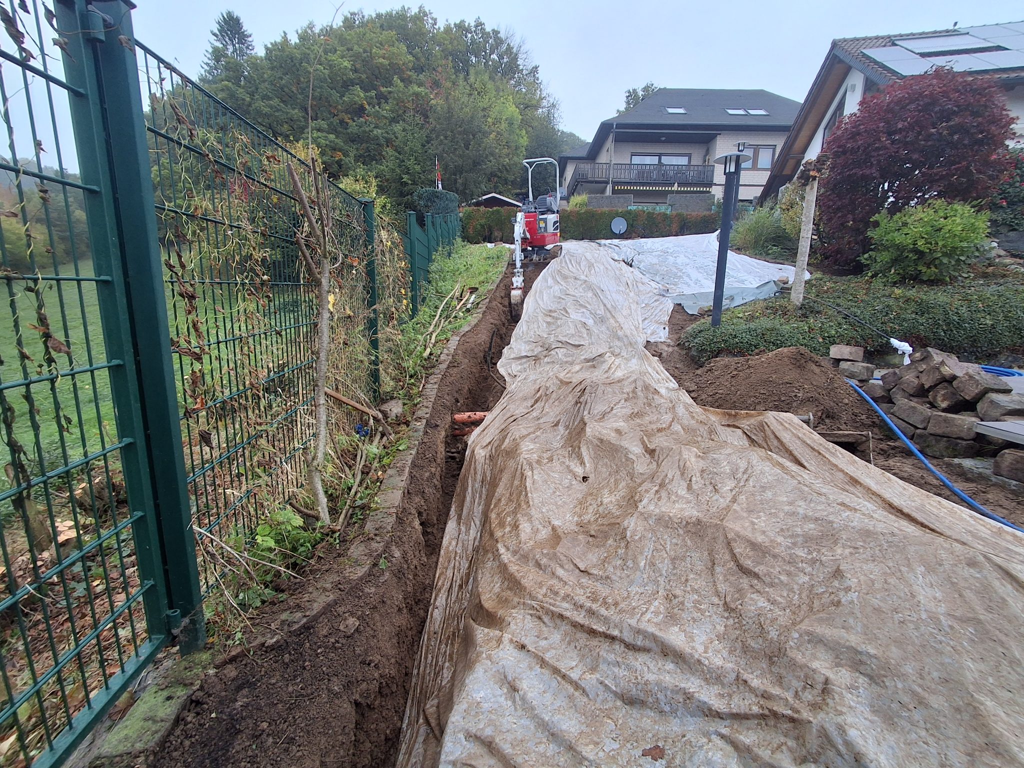 Es wurde eine horizontale Maulwurfssperre MolEX-G der Firma Unger & Bultmann eingebaut. Das Sperrgitter stellt eine dauerhafte, mechanische Barriere dar, die das Hochdrücken von Maulwurfshügeln zuverlässig verhindert. Gleichzeitig ermöglicht die Konstruktion den Tieren, ihre Gangsysteme unterhalb der Sperre weiterhin uneingeschränkt zu nutzen. Der Einbau erfolgte ohne den Einsatz chemischer oder elektronischer Mittel und erfüllt somit ökologische sowie tierschutzrelevante Anforderungen.