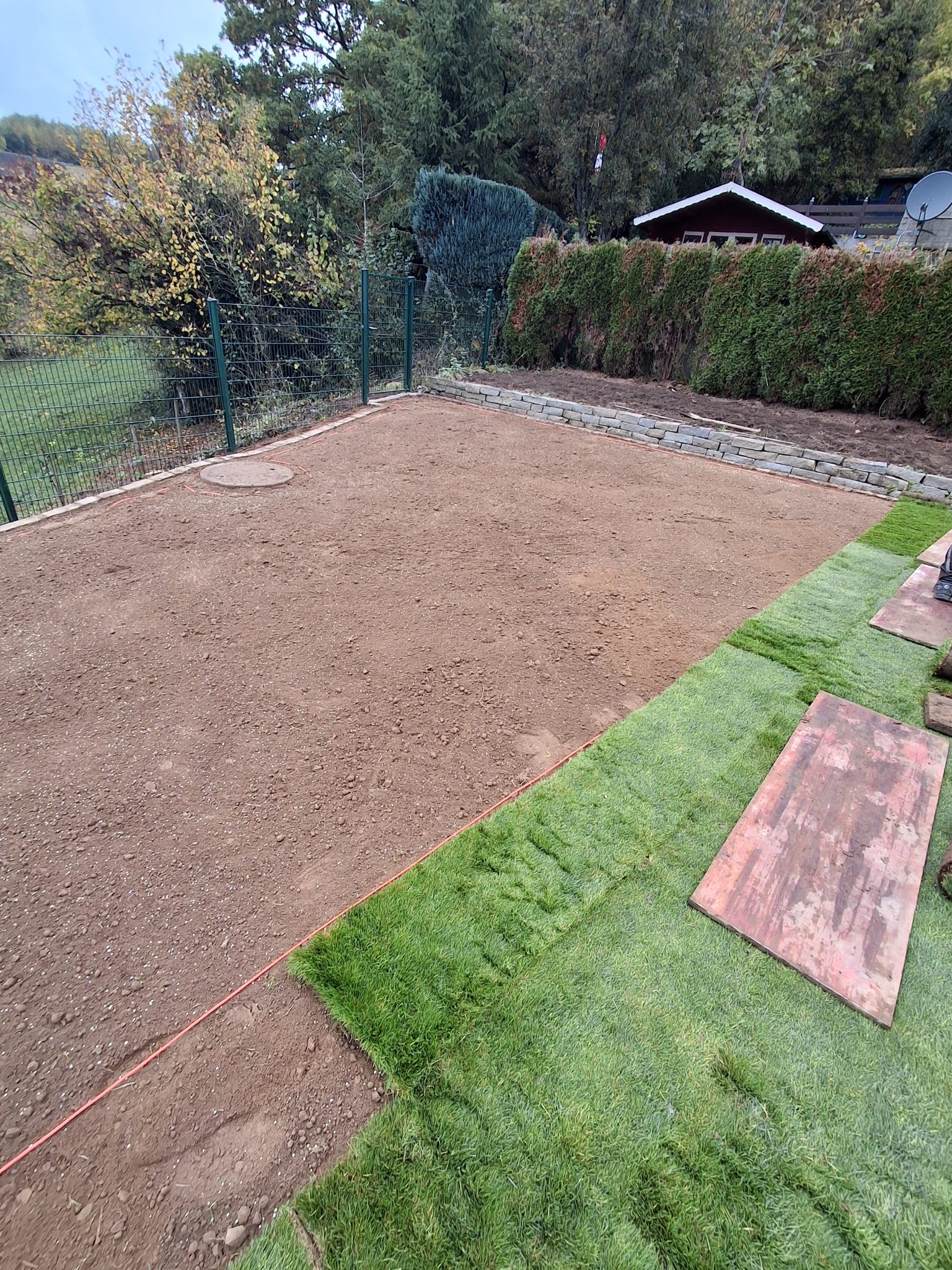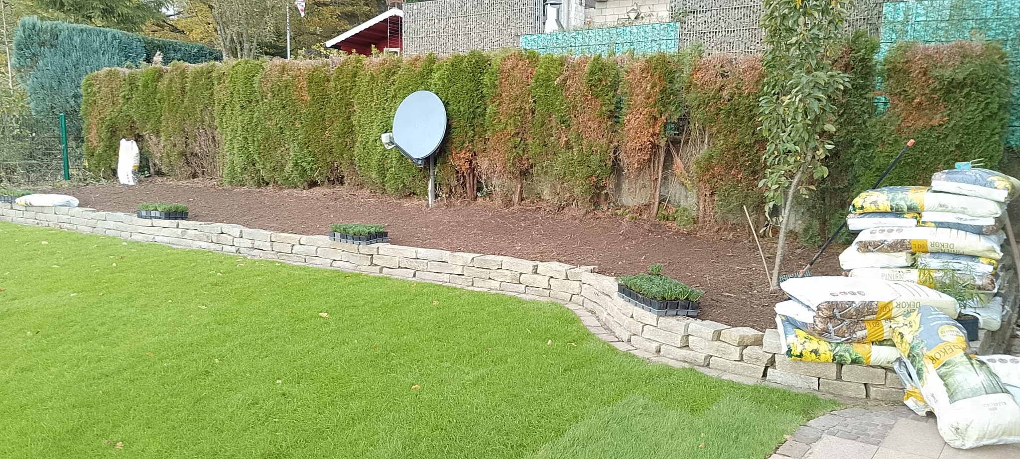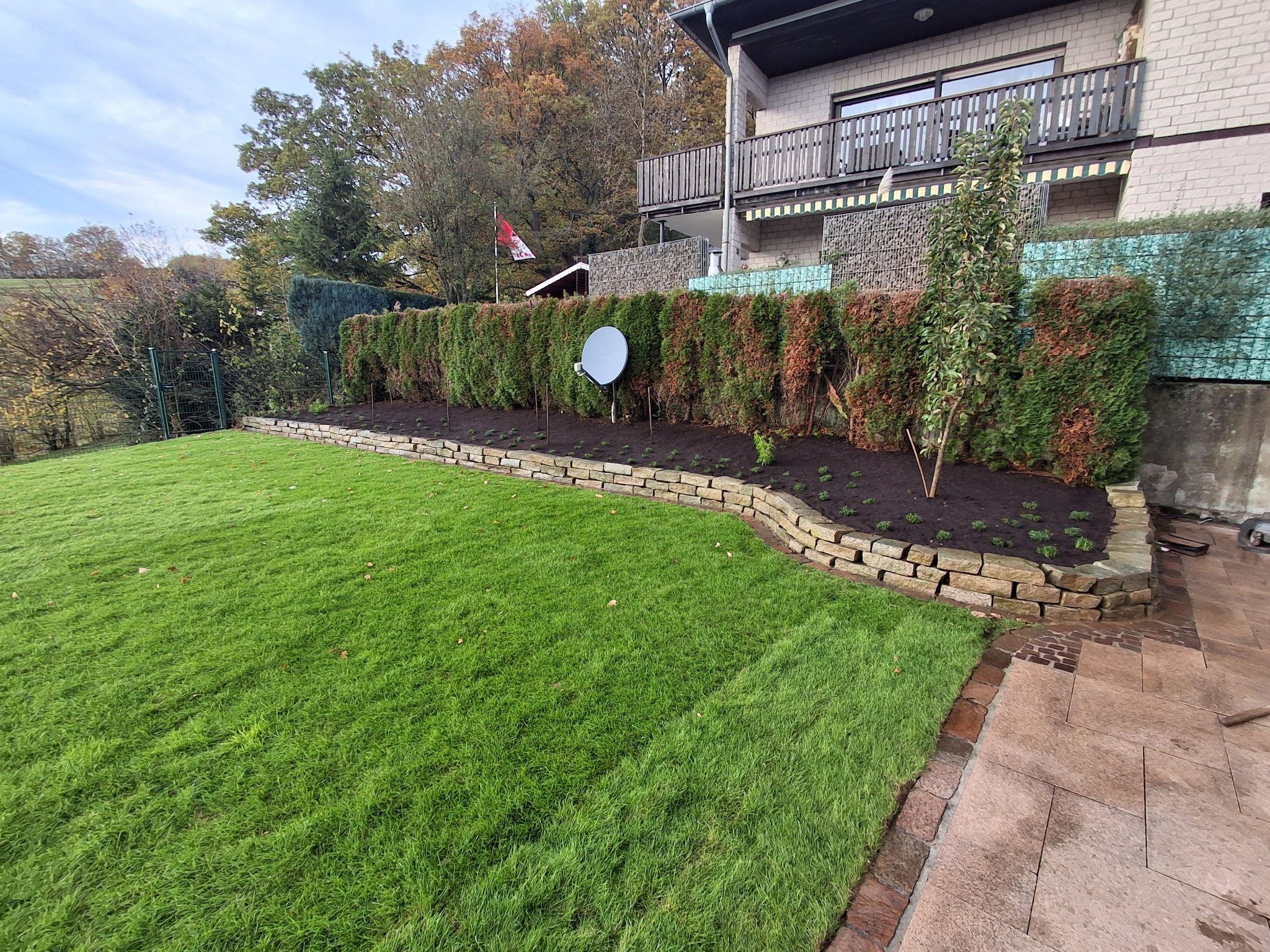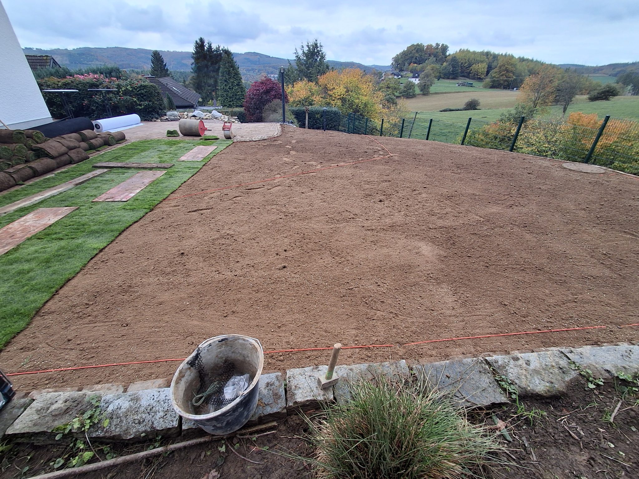 Abschließend wurde hochwertiger Rollrasen verlegt, sodass der Garten in kürzester Zeit wieder in neuem Glanz erstrahlt – eben, gepflegt und dauerhaft schön.
