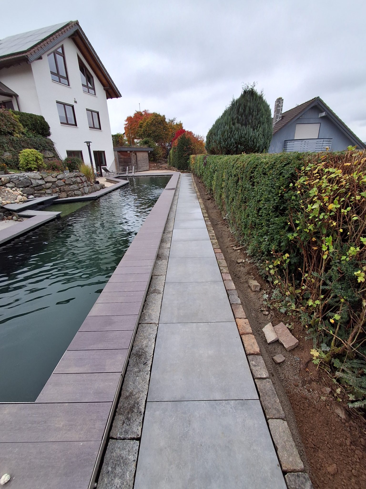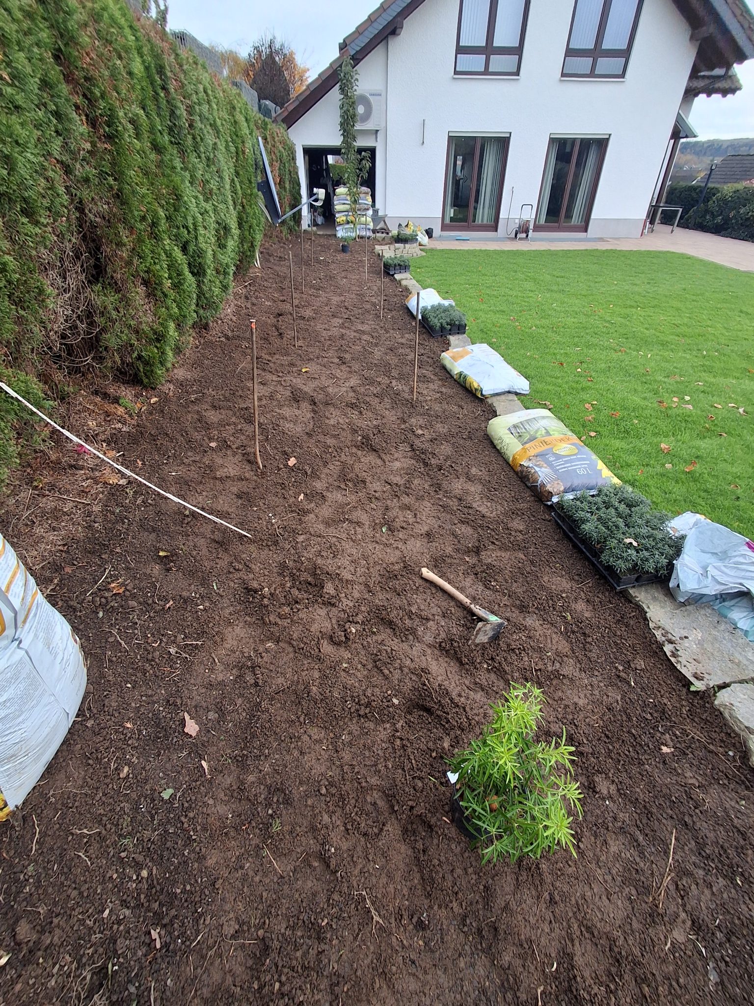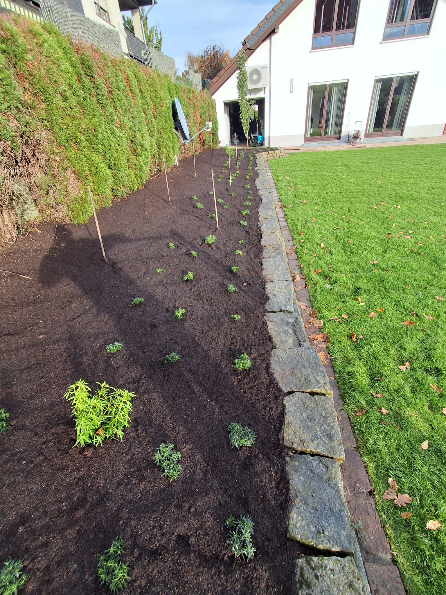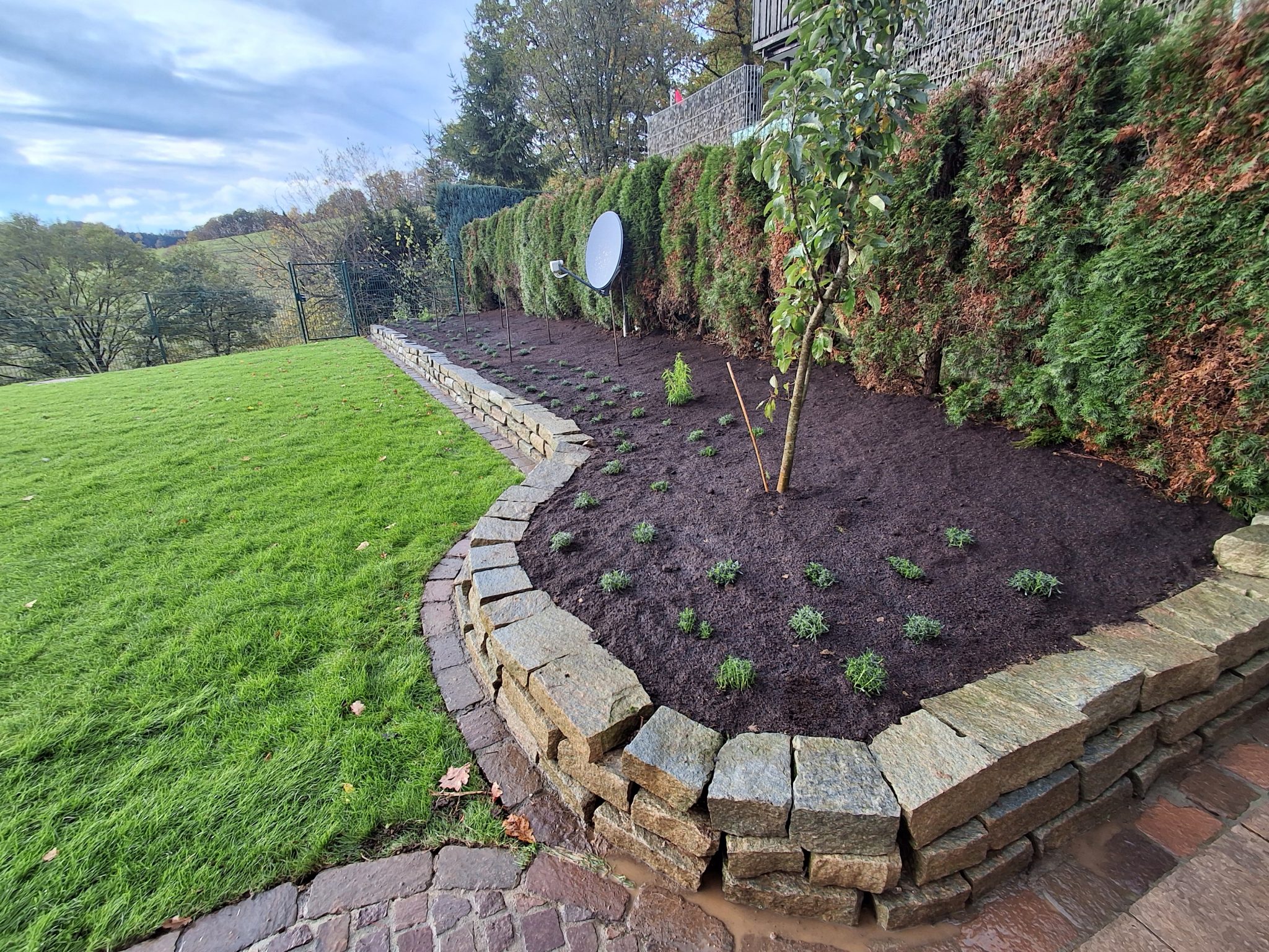 Abschließend wurde hochwertiger Rollrasen verlegt, sodass der Garten in kürzester Zeit wieder in neuem Glanz erstrahlt – eben, gepflegt und dauerhaft schön.