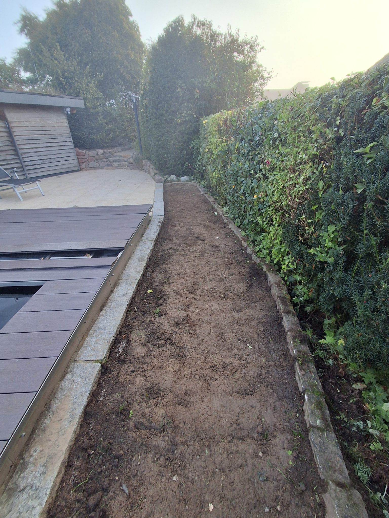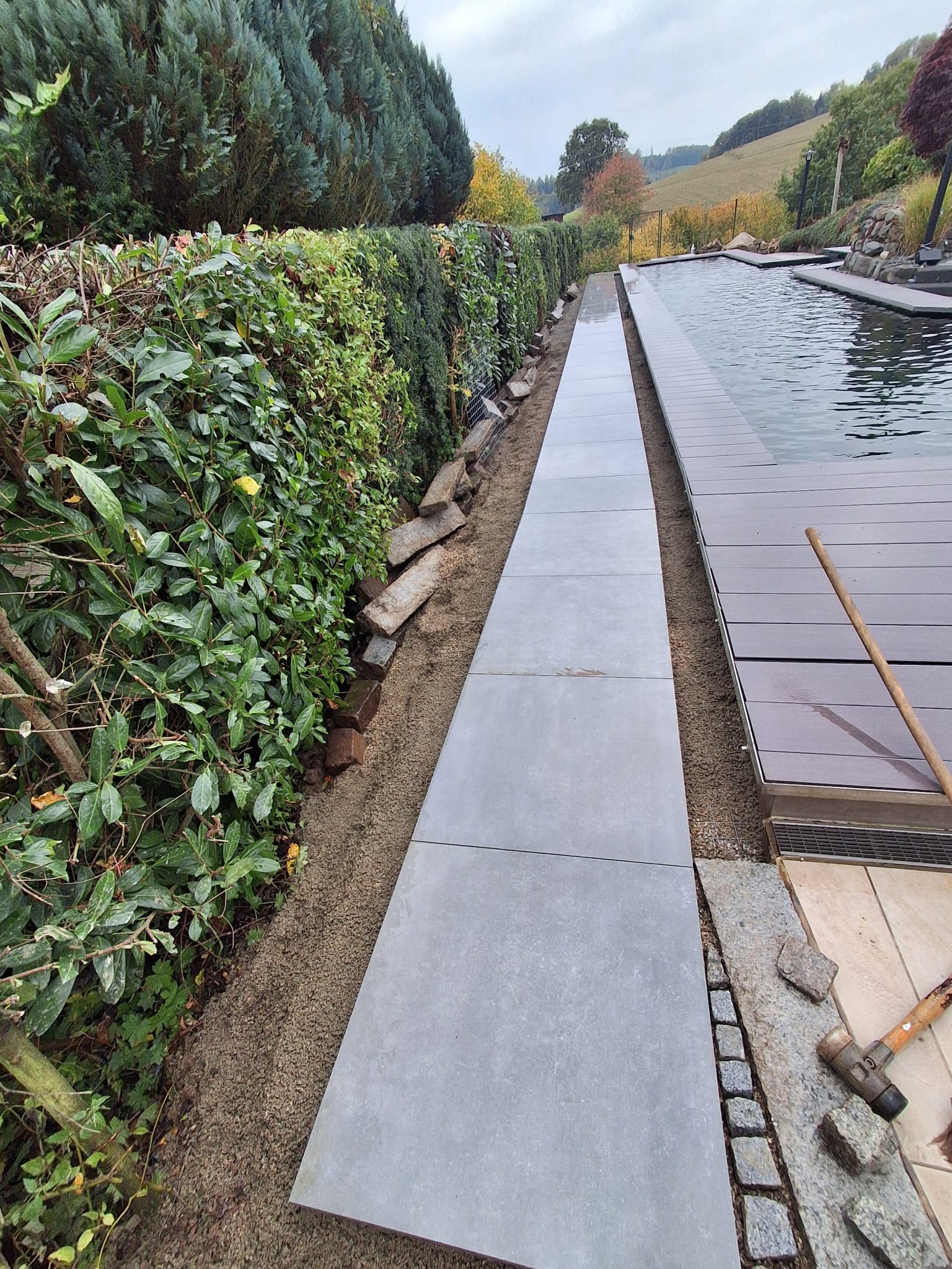 Aus einem einfachen Rasenbereich entstand eine elegante Einfassung für einen Pool. Für dieses Projekt wurde die Einfassung des vorhandenen Pools komplett neu gestaltet. Die Rasenfläche wurde entfernt, der Untergrund sorgfältig vorbereitet und eine Randeinfassung hergestellt. Im Anschluss wurden hochwertige Granitplatten fachgerecht verlegt.