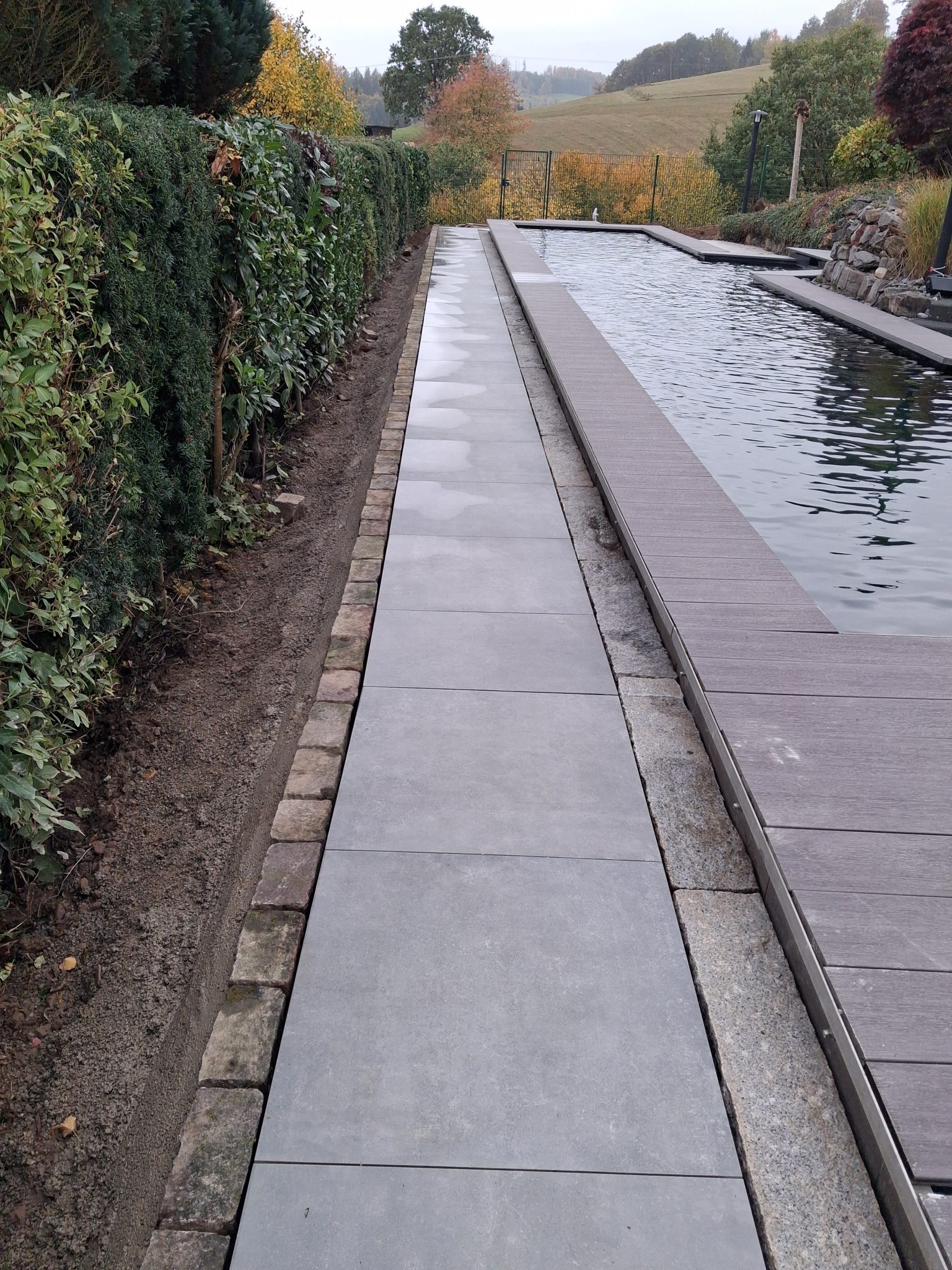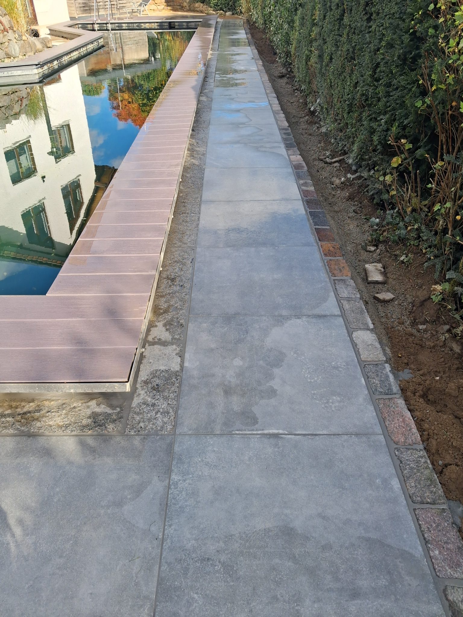 Das Ergebnis ist ein makelloser, klarer Abschluss, der dem Pool einen stilvollen Rahmen verleiht und die gesamte Anlage optisch aufwertet. Die edlen Granitplatten schaffen nicht nur eine elegante Optik, sondern auch eine langlebige, pflegeleichte Oberfläche – für ungestörten Genuss und pure Entspannung am Wasser.
